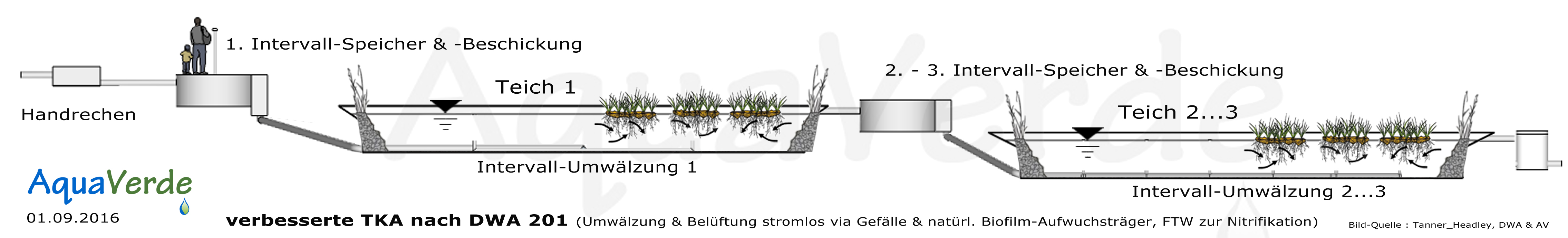 Verbesserte aerobe Vorklärung für stromlose TKA nach DWA A 262 und "Mangroven- & Donaudelta"- Konzept zur verbesserten Steuerung & Nitrifikation von vorhandenen und neuen TKA's nach DWA A 201, wenn vorhandener Mischwasserkanal schwemmfähig ist.
